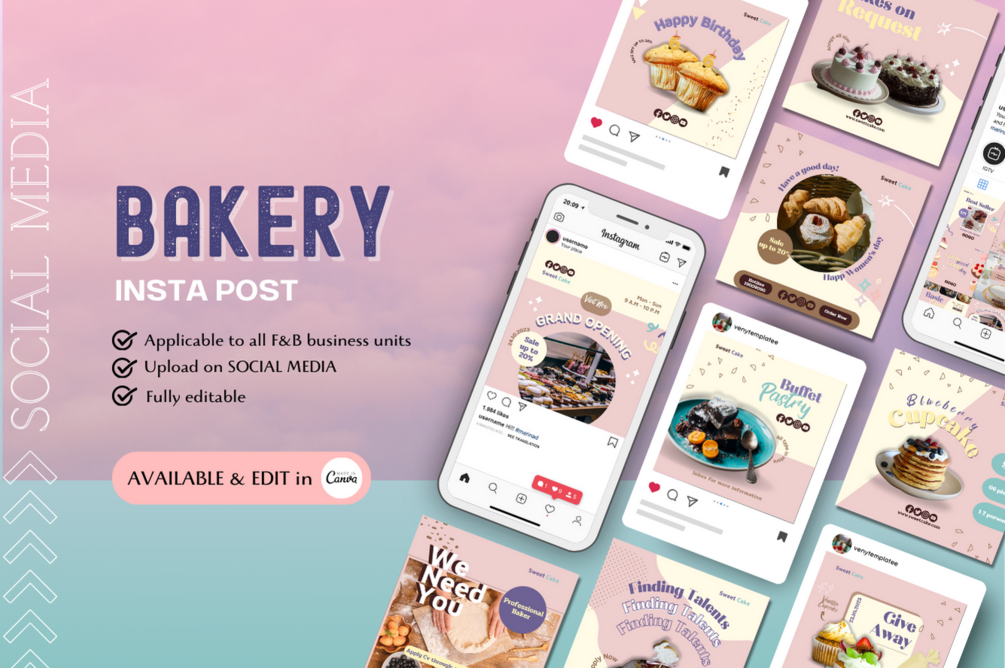 SWEET BAKERY INSTAGRAM TEMPLATE-Bakery Instgram Canva Templates - Pink Pastel Palette - Online Bakery Store
