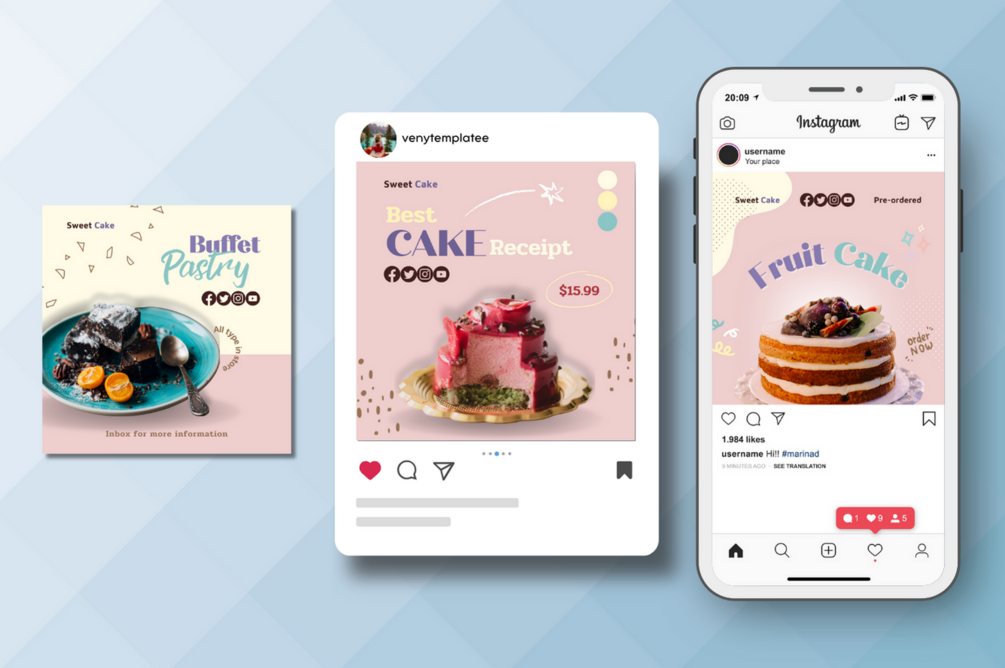 Bakery Instagram Templates is an excellent helper in this regard! This template will assist you in matching and synchronizing your brand's style, such as fonts, photos, logos, and colors, so that your brand can be recognized everywhere it appears.