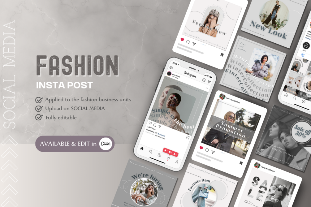 Fashion Instagram Templates is an excellent helper in this regard! This template will assist you in matching and synchronizing your brand's style, such as fonts, photos, logos, and colors, so that your brand can be recognized everywhere it appears.